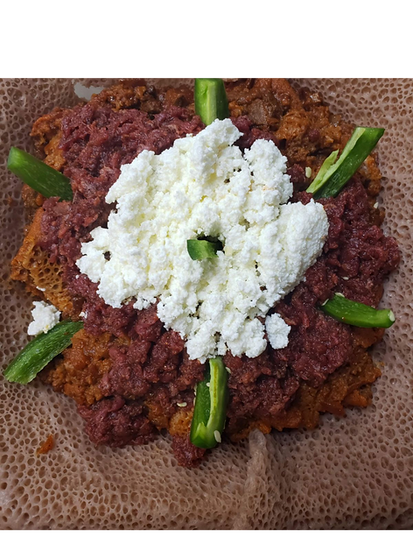 Our Kurt features raw, USDA-approved grass-fed beef, known for its tenderness and rich flavor. Served fresh with cayenne pepper, hot sauce, and senafich (a hot horseradish relish or wasabi), it offers a bold and authentic Ethiopian culinary experience. Enjoy the natural flavors of beef combined with spicy and tangy accompaniments for an invigorating meal.
